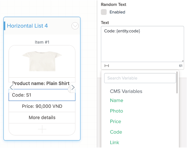 3. Pourquoi mon bloc Horizontal List (liste horizontale), ne fonctionne pas? Il y a plusieurs erreurs qui causent le problème. S'il y a un bouton vide sans données, le flux s'arrêterait. Il y a un maximum de 10 éléments dans un bloc Horizontal List (liste horizontale), il est donc important de s'assurer que chaque élément doit avoir la même valeur que les autres. Par exemple, si le bouton des 9 éléments a un lien direct, mais que vous avez oublié de remplir l'URL dans le bouton de l'élément 10, le bot sera confus et peut arrêter le flux.