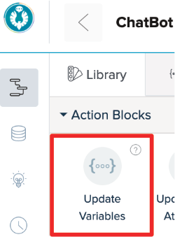 Vous pouvez définir ou modifier la valeur d'une Variable avec le Action Block (bloc d'action) Update Variables (mettre à jour les variables). Cette action permet de mettre à jour automatiquement la valeur d'une Variable dans le flux.