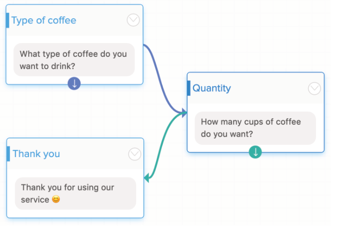 Avec le principe de priorité, si vous ne définissez aucune valeur de Response Validation (validation de la réponse) ou aucune Condition du Connecteur pour le bloc, il utilisera automatiquement le bloc suivant comme réponse. Et si le bot ne peut toujours pas comprendre les phrases du client, le bloc de secours Auto Fallback when bot can not respond (repli automatique lorsque le bot ne peut pas répondre) sera alors déclenché (ce block de sécurité doit être activé dans les paramètres du Bot Builder, onglet Behaviors (comportements)).